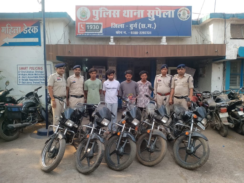 विवेचना के दौरान दिनांक 24.04.2026 को मुखबिर सूचना पर लक्ष्मी नगर सुपेला क्षेत्र से संदिग्धों को हिरासत में लिया गया। पूछताछ में आरोपियों द्वारा संगठित होकर अलग-अलग स्थानों से वाहन चोरी करना स्वीकार किया गया। आरोपियों की निशानदेही पर भिलाई नगर रेलवे स्टेशन गौठान के पास झाड़ियों से चोरी के 06 दोपहिया वाहन बरामद कर जप्त किए गए। प्रकरण में संगठित रूप से चोरी करना पाए जाने पर धारा 112(2) बीएनएस जोड़ी गई। आरोपियों को विधिवत गिरफ्तार कर न्यायालय प्रस्तुत किया गया।