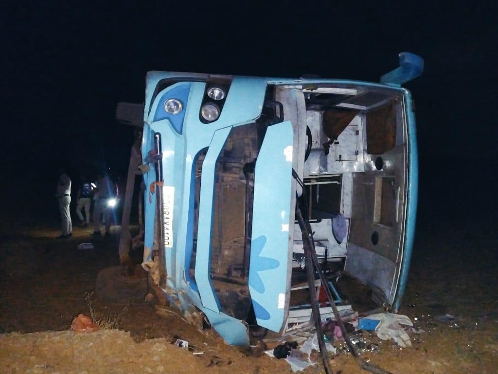 दुर्ग में बारात से लौट रही बस अनियंत्रित होकर पलटी, 19 लोग घायल, दो की हालत गंभीर