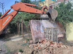 अतिक्रमण कर नाली के ऊपर बनाये गये बाउंड्रीवाल पर नगर निगम ने चलाया जेसीबी